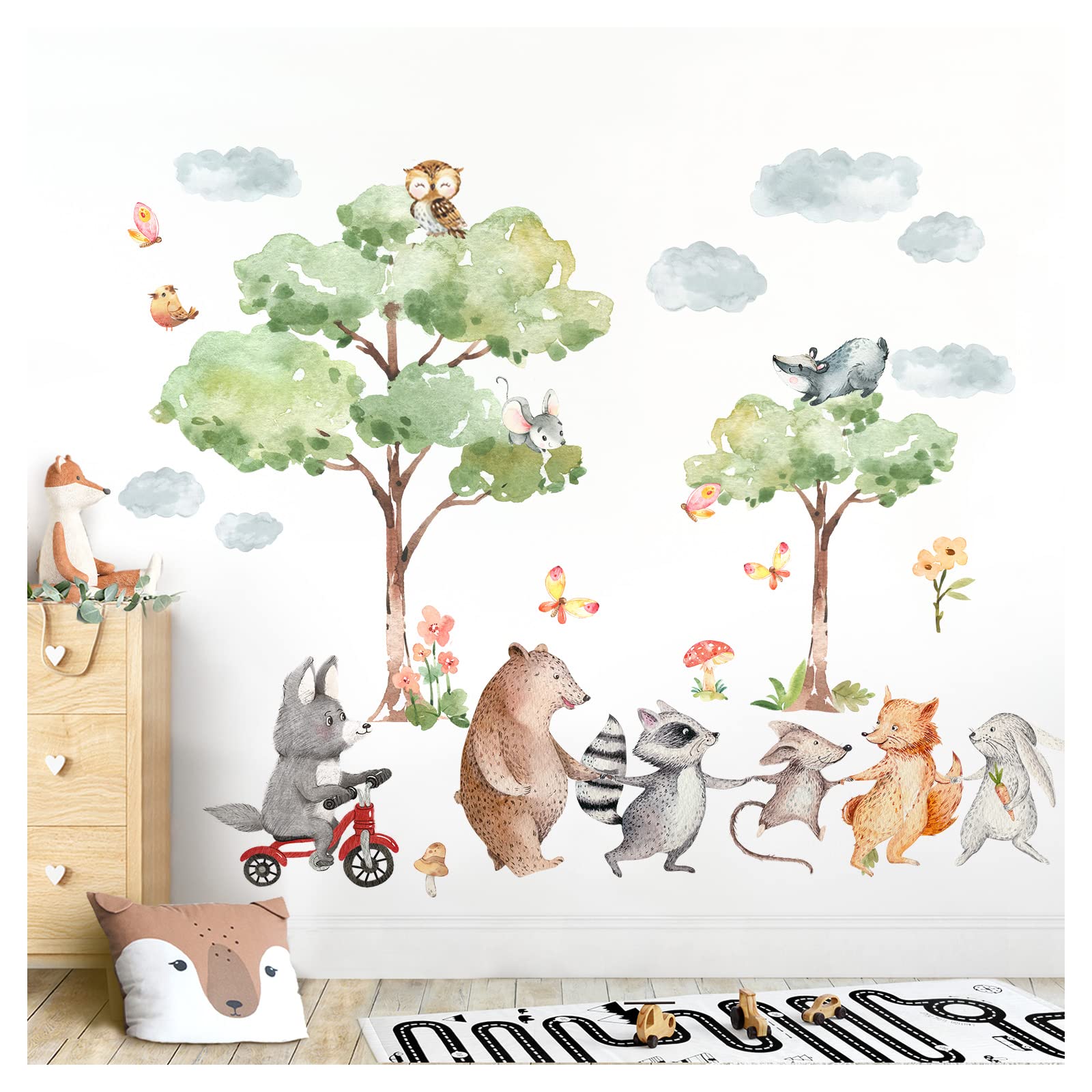 - La confezione include un adesivo da parete con animali e alberi, che misura 192 x 110 cm, con l'albero grande di 77 x 90 cm (larghezza x altezza), fornendo una decorazione murale moderna e di alta qualità per la casa.