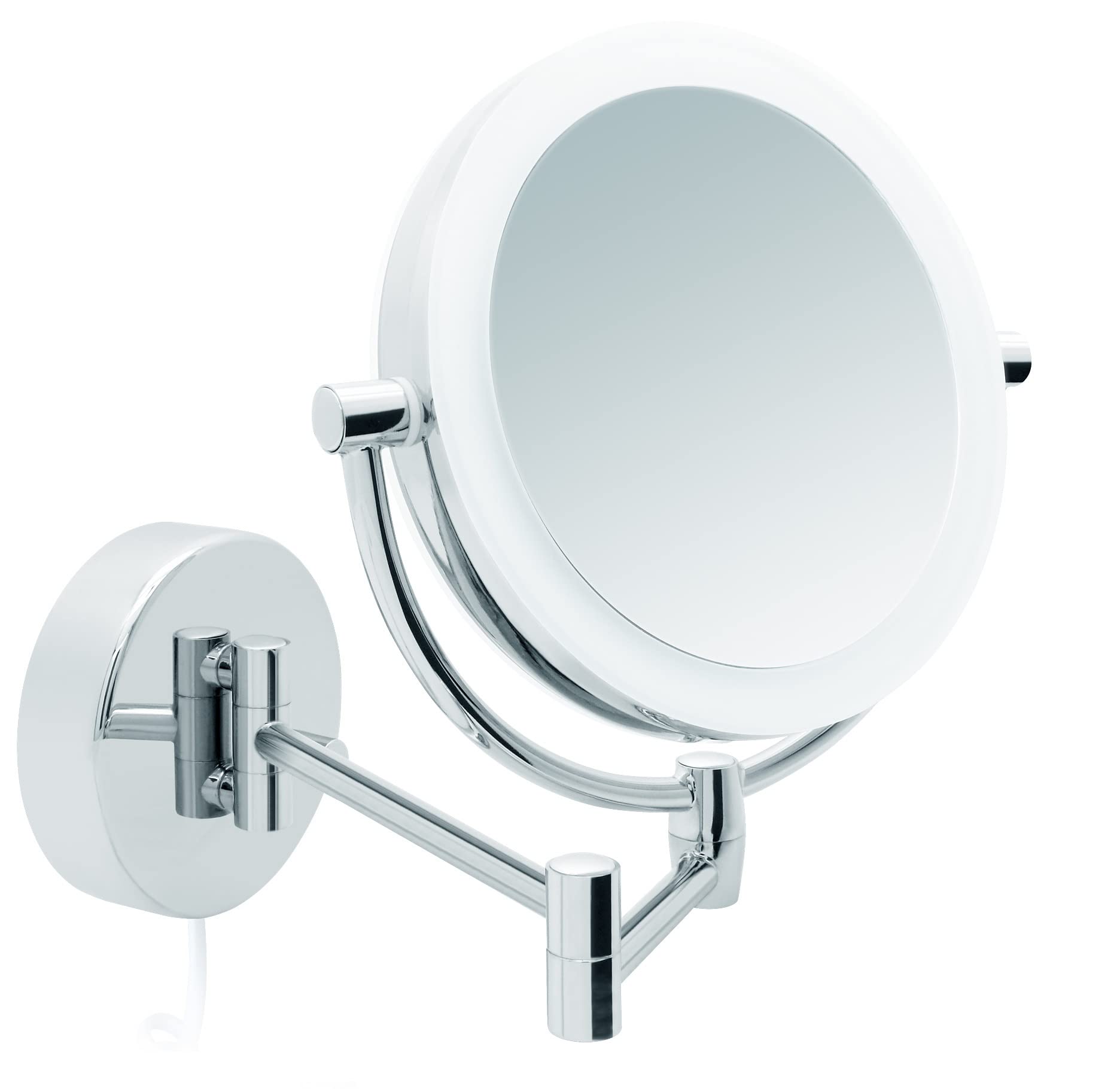 - Il design girevole ed estraibile, con un giunto a 360° e superficie dello specchio rotante, lo rende flessibile per trucco, rasatura e cosmetici. Il braccio snodato è estensibile e può essere ripiegato contro la parete per risparmiare spazio.