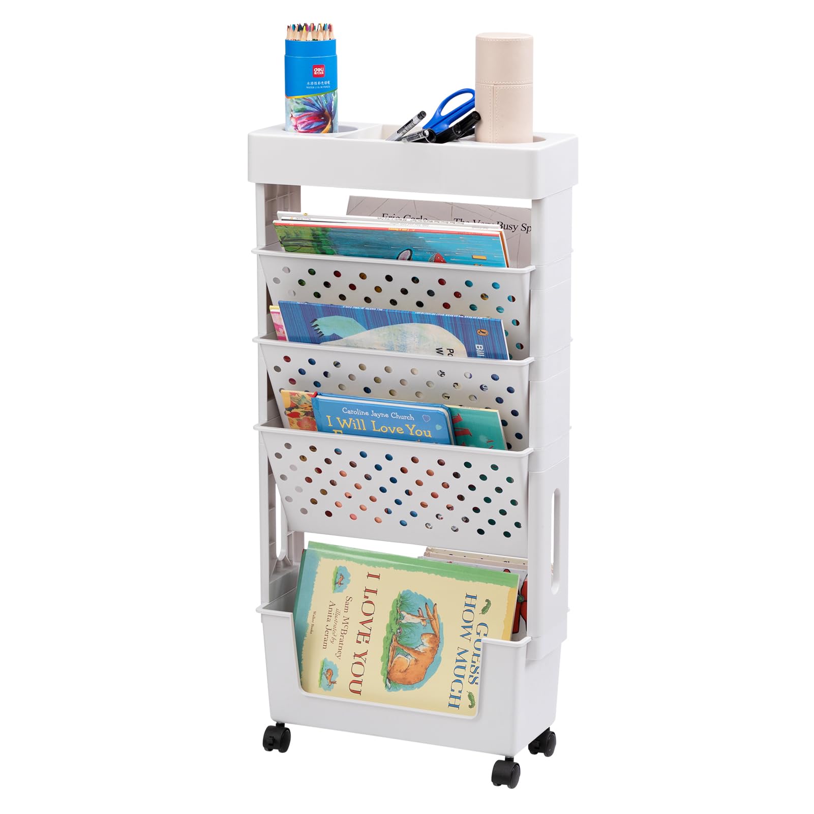 Doeworks Libreria Piccolo Scaffale con Ruote 5 Livelli, Bianco