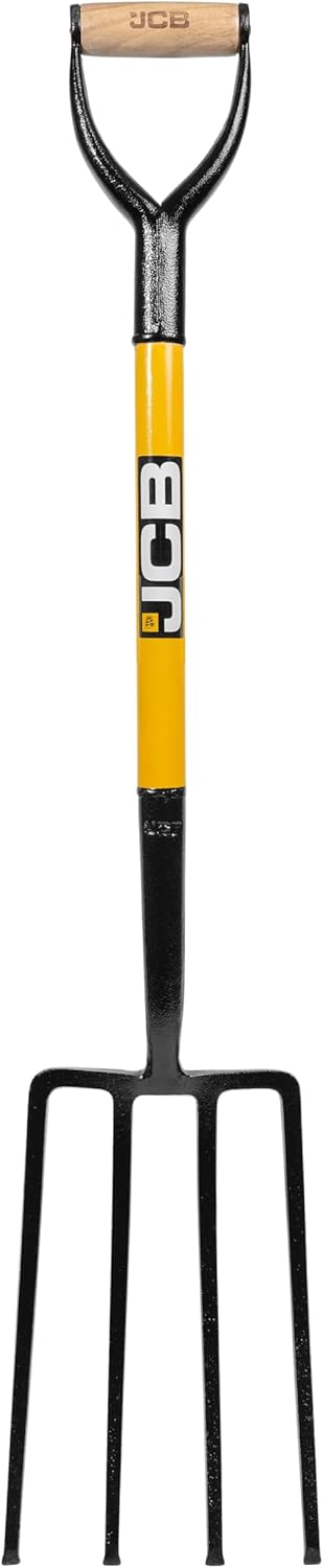 - La forcella da giardino professionale si inserisce nella gamma di attrezzi JCB, progettata per costruttori, giardinieri ed orticoltori esperti, affiancando pale aperte, pale da cantiere, vanghe da innesto e trivelle per pali da recinzione.