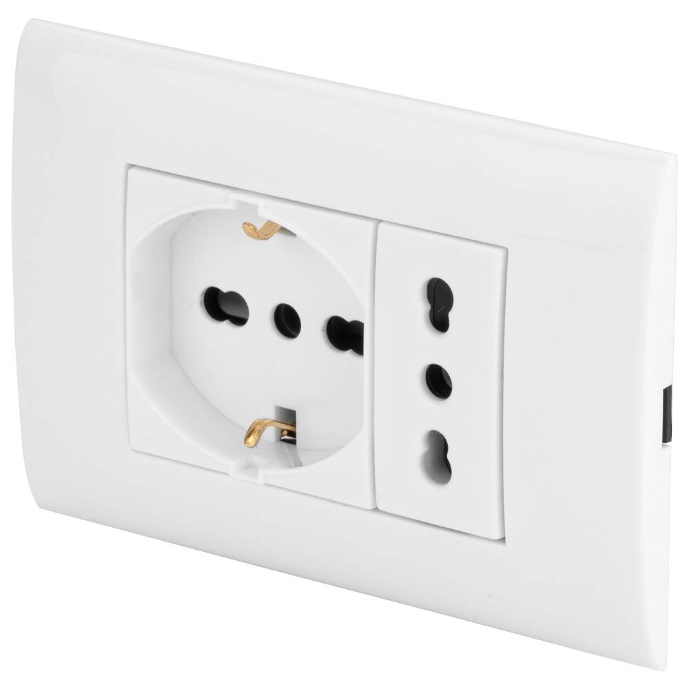 Frutto presa bivalente e pluristandard · Kit incasso con supporto e viti