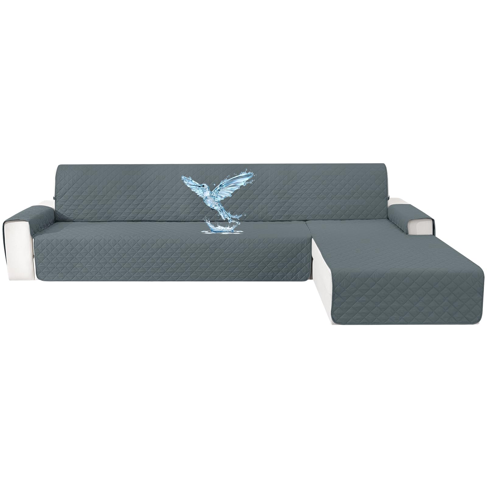 Copridivano Impermeabile 2 Posti con Penisola, Grigio Scuro