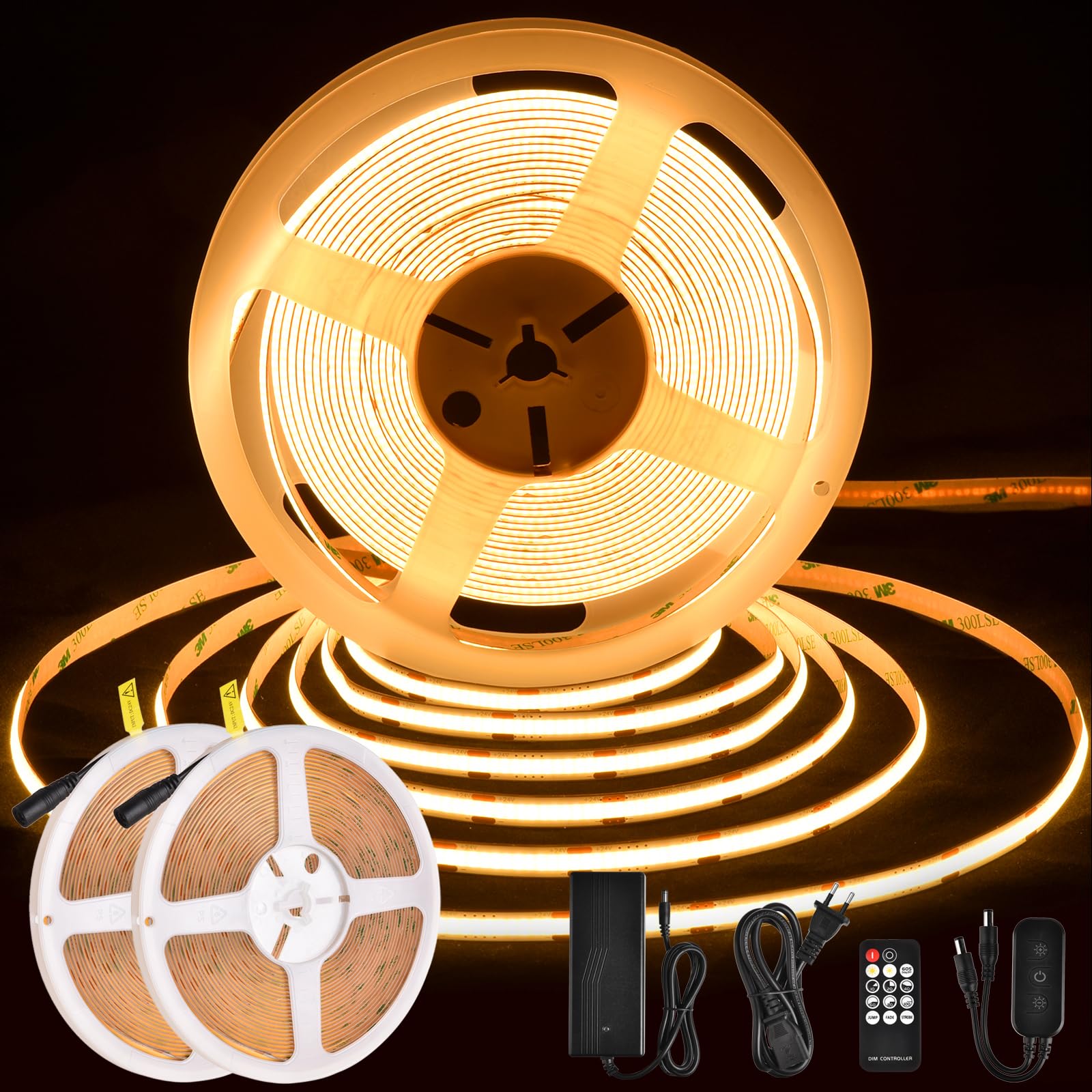 - Il kit include due rotoli di striscia LED COB da 10 metri ciascuno, fornendo una lunghezza totale di 20 metri, ideale per illuminare ampie superfici. Perfetta per decorare camere da letto, cucine, scale, sale da pranzo, soggiorni e allestimenti per feste. Si raccomanda di collegare le strisce LED in parallelo, non in serie.
