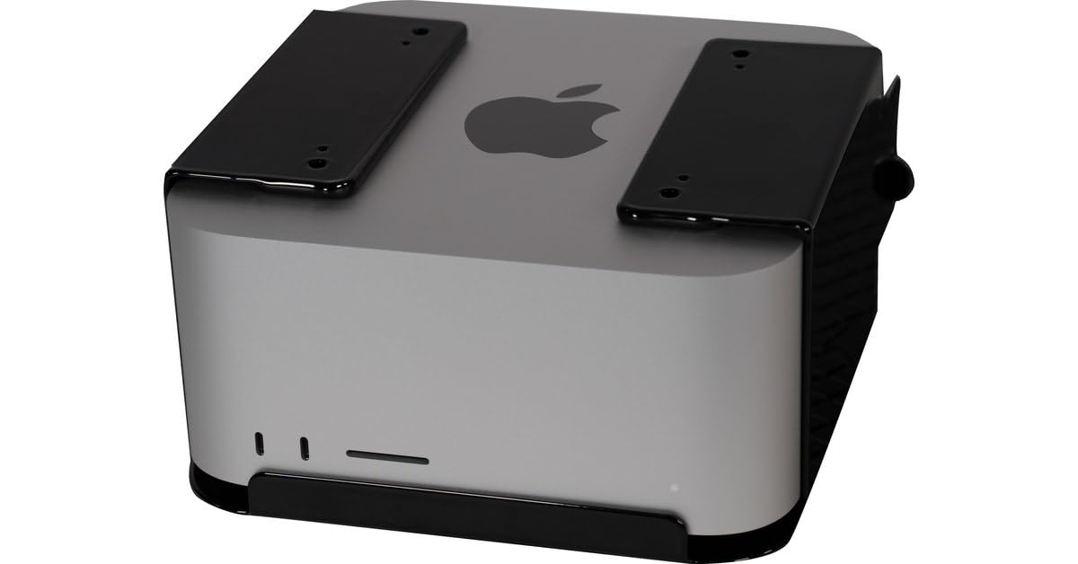 - Fissa in modo sicuro il tuo Mac Studio sotto una scrivania, un tavolo, uno scaffale o direttamente a una parete, proteggendolo da urti e cadute.
