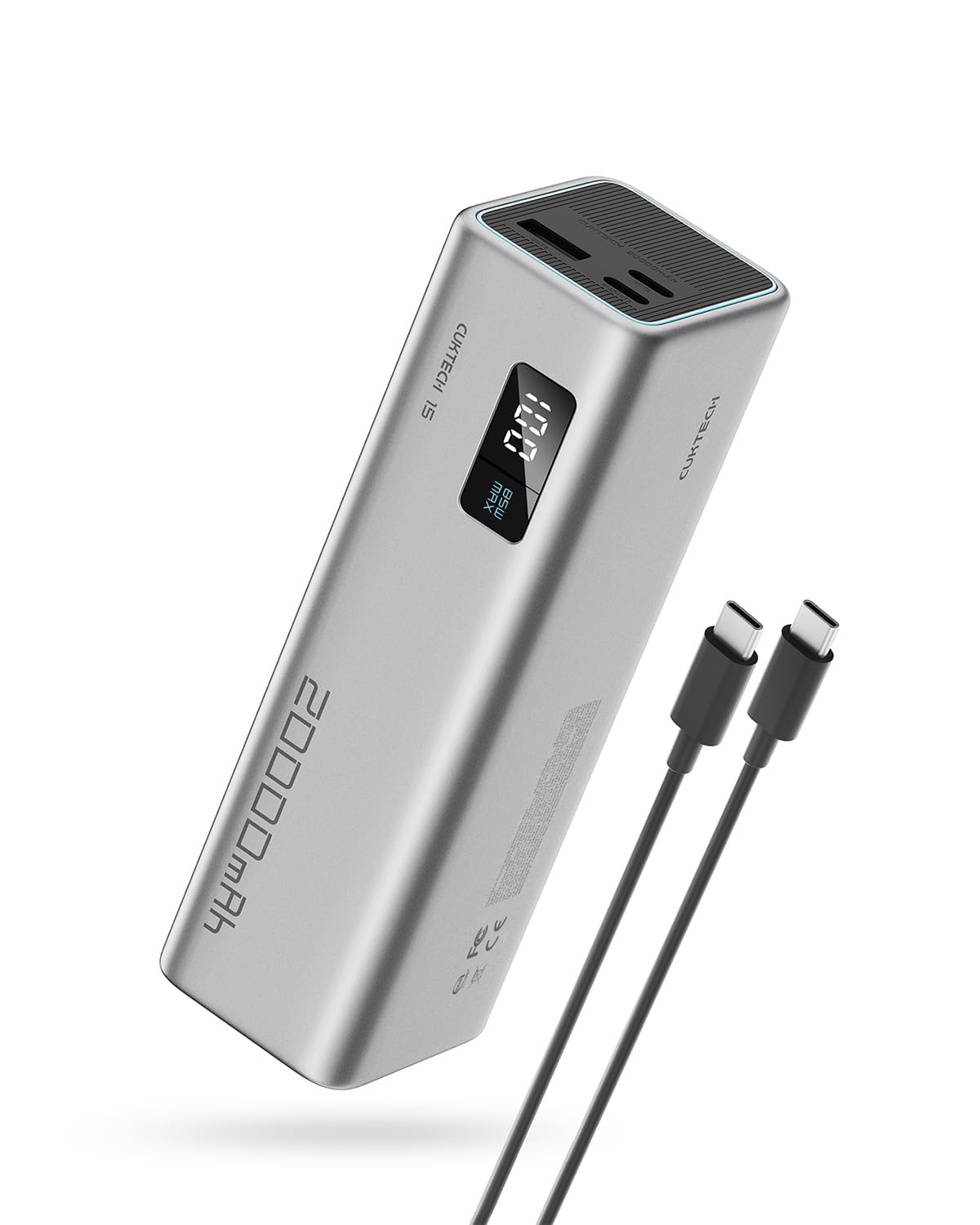 - Il power bank CUKTECH 15 SE combina un design essenziale con un'elevata capacità di 20.000mAh. Nonostante la sua potente batteria, rimane compatto e facile da trasportare, adattandosi perfettamente a qualsiasi borsa, rendendolo ideale per chi è sempre in movimento e necessita di un caricatore portatile affidabile.