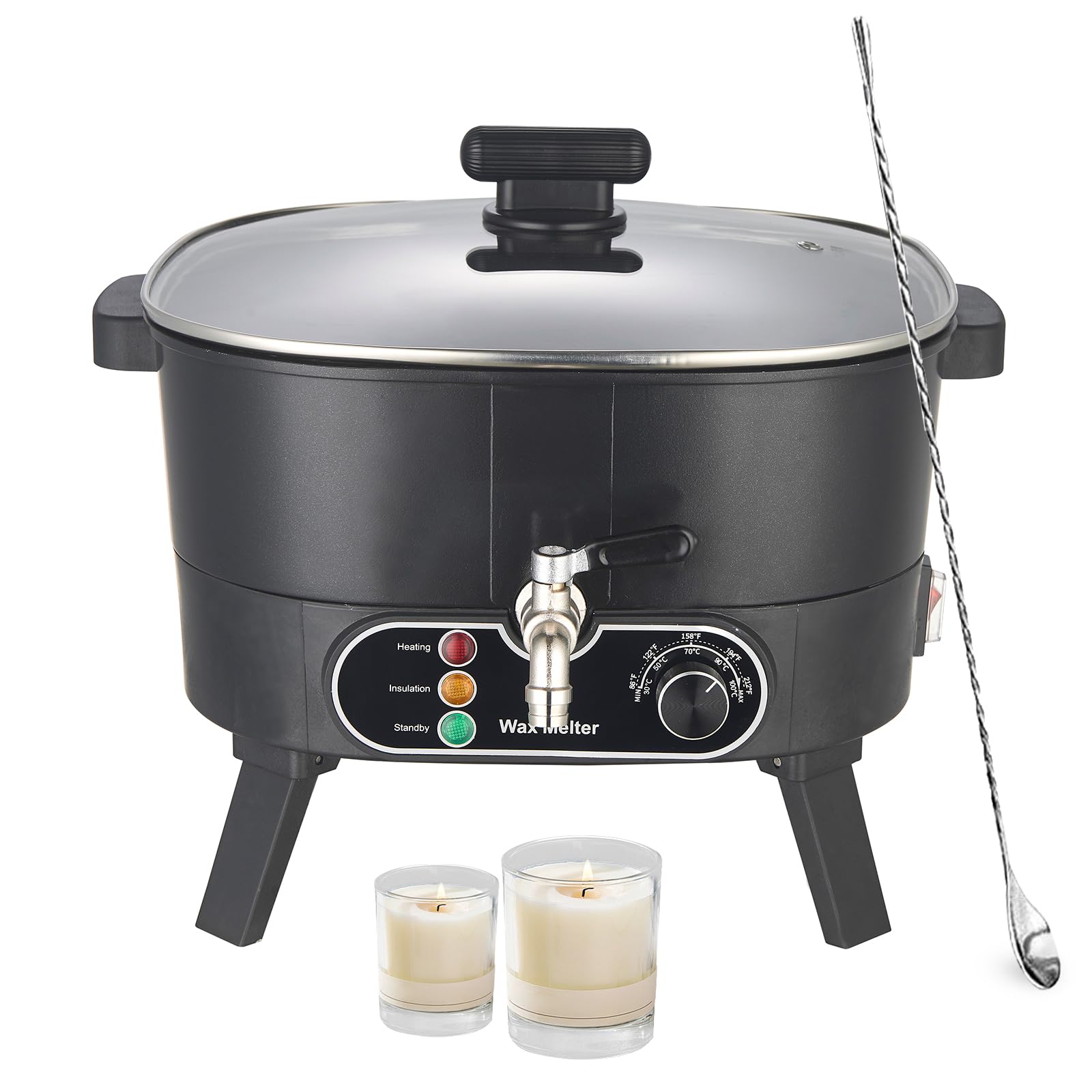 - Ampiamente usato: lo scioglimento della cera per candele può fondere cera di soia, cera di paraffina, cocco, cera d'api o base di sapone ed è adatto per la produzione di varie candele profumate o saponi, balsamo per le labbra e altri prodotti. Capacità extra grande per risparmiare tempo, energia e materiali. Una scelta eccellente per tutti coloro che hanno bisogno di fare candele in grandi quantità con la massima efficienza.